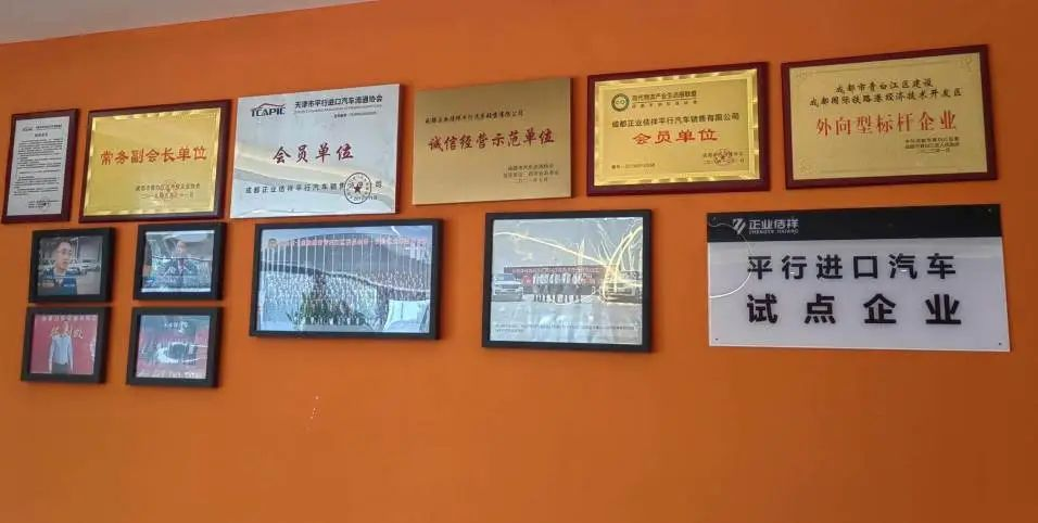 办公区一侧的展示墙上,挂着公司这几年取得的大小成就:平行进口汽车试点企业、天津市平行进口汽车流通协会会员单位、成都市汽车流通协会诚信经营示范单位、成都市供应链协会会员单位等十几个牌子,还有一张特别有纪念意义的图片,“那是2018年公司进口的全国第一批新款路虎。”陈友富说。